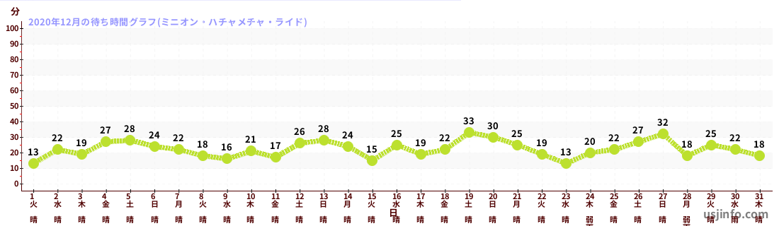 • ミニオン・ハチャメチャ・ライド$B$N(B2020年12月01日のの一日平均待ち時間