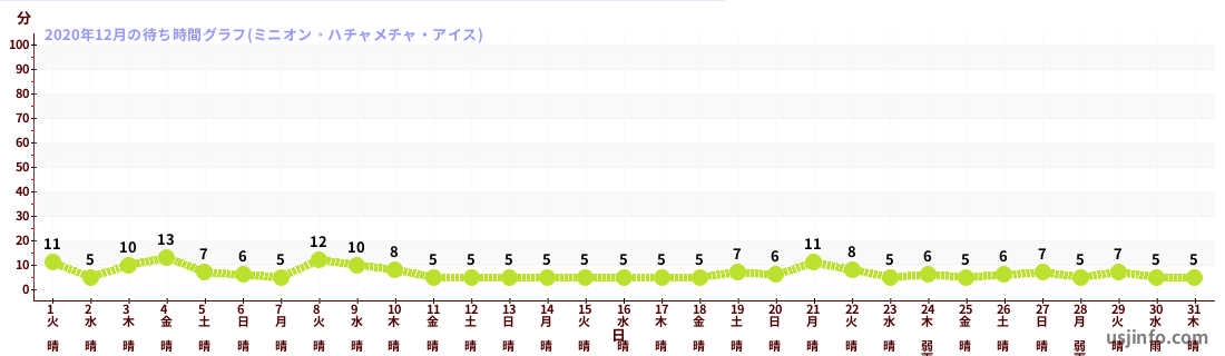 • ミニオン・ハチャメチャ・アイス$B$N(B2020年12月01日のの一日平均待ち時間