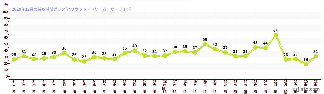 • ハリウッド・ドリーム・ザ・ライド$B$N(B2020年12月01日のの一日平均待ち時間