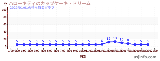 • ハローキティのカップケーキ・ドリーム$B$N(B2020年01月01日の待ち時間