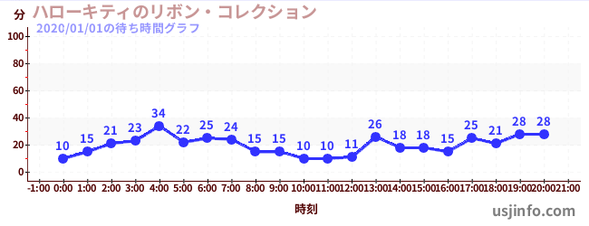 • ハローキティのリボン・コレクション$B$N(B2020年01月01日の待ち時間