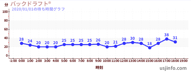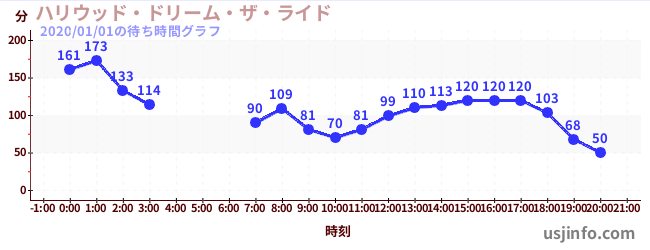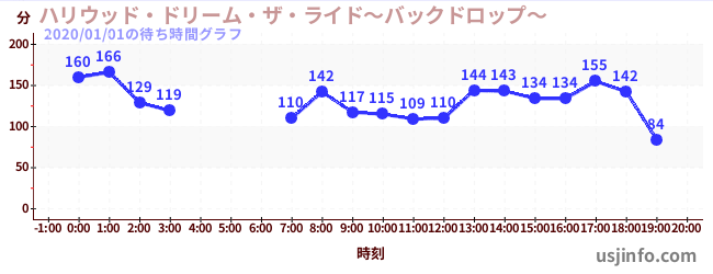 • ハリウッド・ドリーム・ザ・ライド〜バックドロップ〜$B$N(B2020年01月01日の待ち時間