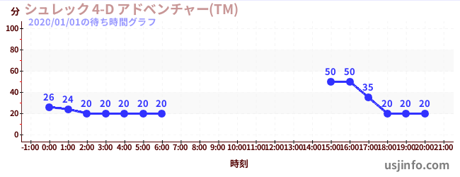 • シュレック 4-D アドベンチャー(TM)$B$N(B2020年01月01日の待ち時間