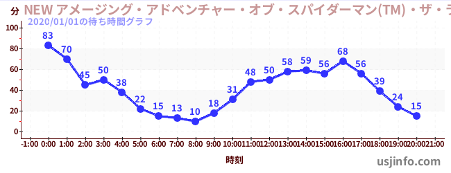 • NEW アメージング・アドベンチャー・オブ・スパイダーマン(TM)・ザ・ライド 4K3D$B$N(B2020年01月01日の待ち時間