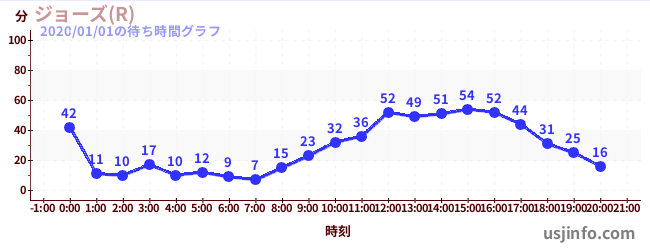 • ジョーズ(R)$B$N(B2020年01月01日の待ち時間