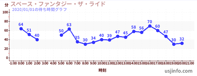 • スペース・ファンタジー・ザ・ライド$B$N(B2020年01月01日の待ち時間