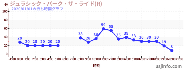 • ジュラシック・パーク・ザ・ライド(R)$B$N(B2020年01月01日の待ち時間