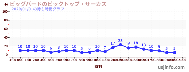• ビッグバードのビックトップ・サーカス$B$N(B2020年01月01日の待ち時間
