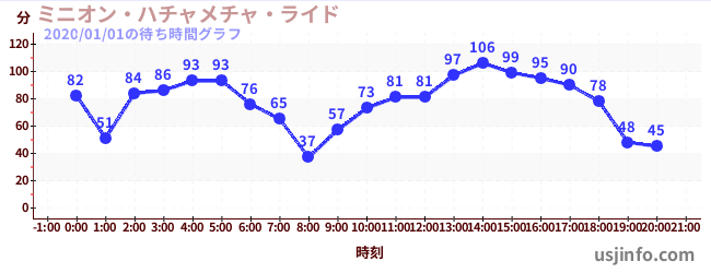 • ミニオン・ハチャメチャ・ライド$B$N(B2020年01月01日の待ち時間