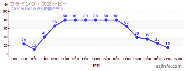 • フライング・スヌーピー$B$N(B2020年01月02日の待ち時間