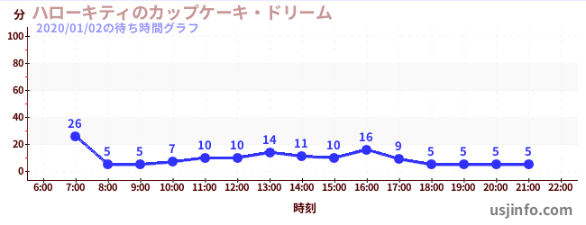• ハローキティのカップケーキ・ドリーム$B$N(B2020年01月02日の待ち時間