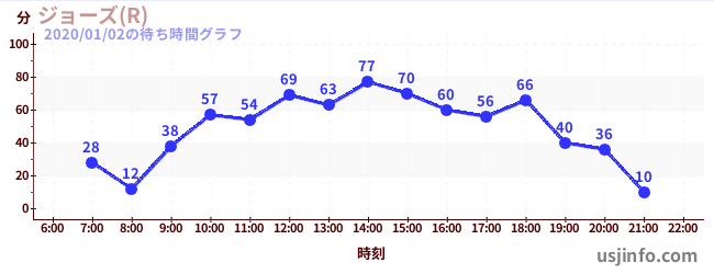 • ジョーズ(R)$B$N(B2020年01月02日の待ち時間