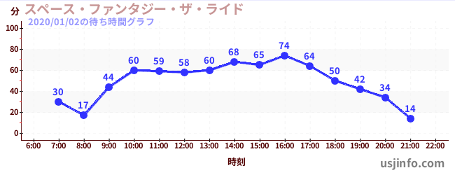 • スペース・ファンタジー・ザ・ライド$B$N(B2020年01月02日の待ち時間