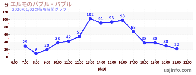 • エルモのバブル・バブル$B$N(B2020年01月02日の待ち時間