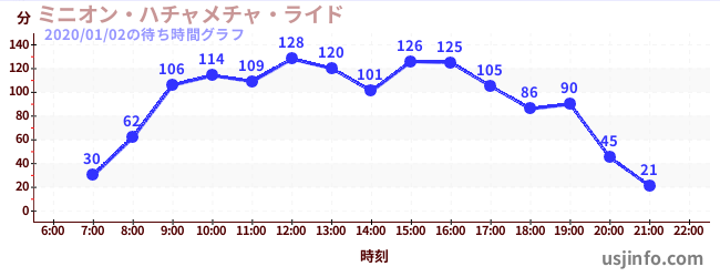• ミニオン・ハチャメチャ・ライド$B$N(B2020年01月02日の待ち時間