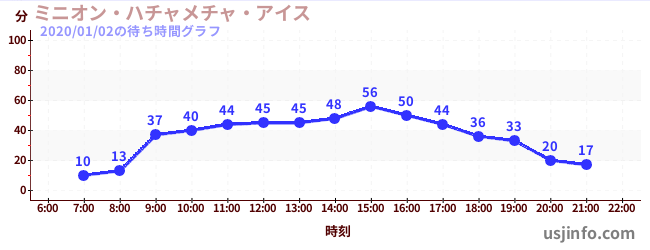 • ミニオン・ハチャメチャ・アイス$B$N(B2020年01月02日の待ち時間