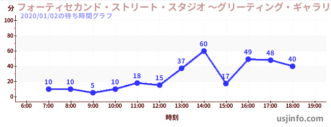 • フォーティセカンド・ストリート・スタジオ ~グリーティング・ギャラリー~ ピーナッツの仲間たち$B$N(B2020年01月02日の待ち時間