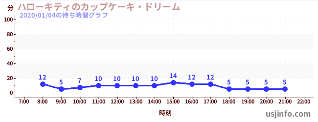 • ハローキティのカップケーキ・ドリーム$B$N(B2020年01月04日の待ち時間