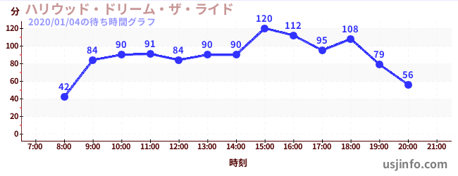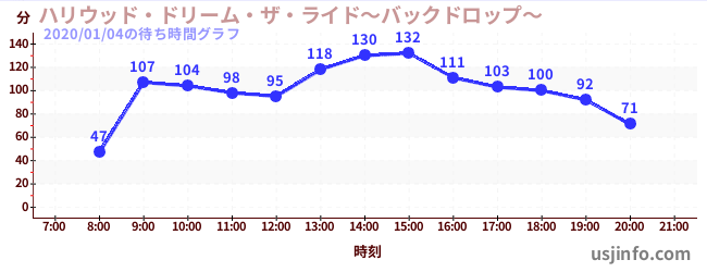 • ハリウッド・ドリーム・ザ・ライド〜バックドロップ〜$B$N(B2020年01月04日の待ち時間