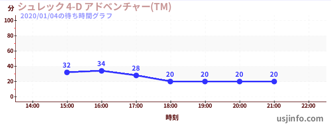• シュレック 4-D アドベンチャー(TM)$B$N(B2020年01月04日の待ち時間