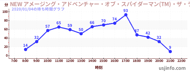 • NEW アメージング・アドベンチャー・オブ・スパイダーマン(TM)・ザ・ライド 4K3D$B$N(B2020年01月04日の待ち時間