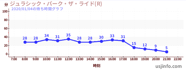• ジュラシック・パーク・ザ・ライド(R)$B$N(B2020年01月04日の待ち時間
