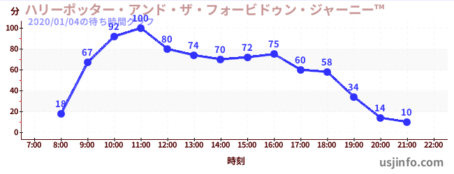 • ハリーポッター・アンド・ザ・フォービドゥン・ジャーニー™$B$N(B2020年01月04日の待ち時間