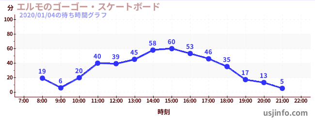 • エルモのゴーゴー・スケートボード$B$N(B2020年01月04日の待ち時間