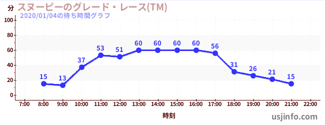 • スヌーピーのグレード・レース(TM)$B$N(B2020年01月04日の待ち時間