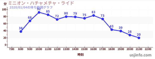 • ミニオン・ハチャメチャ・ライド$B$N(B2020年01月04日の待ち時間