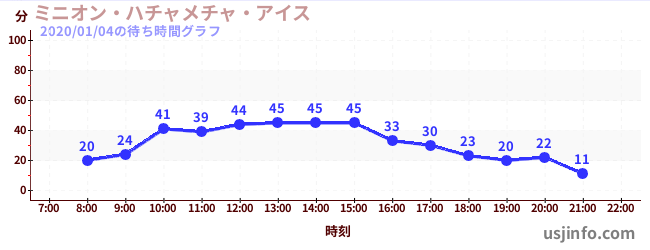 • ミニオン・ハチャメチャ・アイス$B$N(B2020年01月04日の待ち時間