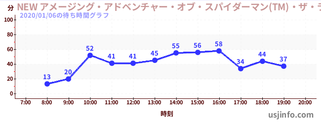 • NEW アメージング・アドベンチャー・オブ・スパイダーマン(TM)・ザ・ライド 4K3D$B$N(B2020年01月06日の待ち時間