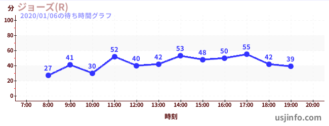 • ジョーズ(R)$B$N(B2020年01月06日の待ち時間