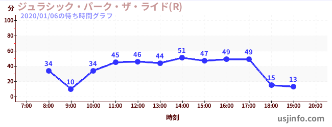 • ジュラシック・パーク・ザ・ライド(R)$B$N(B2020年01月06日の待ち時間