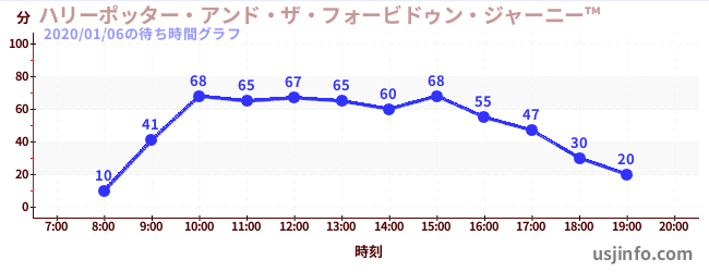 • ハリーポッター・アンド・ザ・フォービドゥン・ジャーニー™$B$N(B2020年01月06日の待ち時間