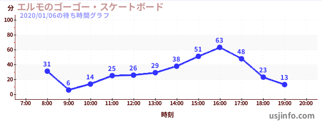 • エルモのゴーゴー・スケートボード$B$N(B2020年01月06日の待ち時間