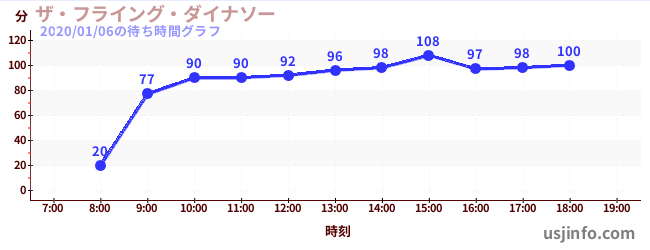 • ザ・フライング・ダイナソー$B$N(B2020年01月06日の待ち時間