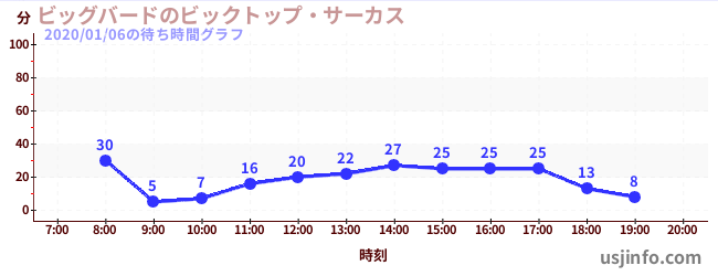 • ビッグバードのビックトップ・サーカス$B$N(B2020年01月06日の待ち時間