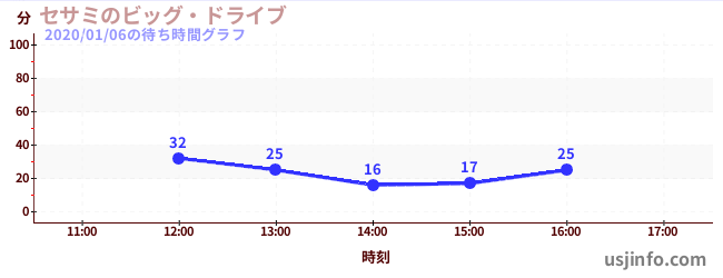 • セサミのビッグ・ドライブ$B$N(B2020年01月06日の待ち時間