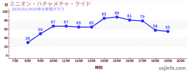 • ミニオン・ハチャメチャ・ライド$B$N(B2020年01月06日の待ち時間