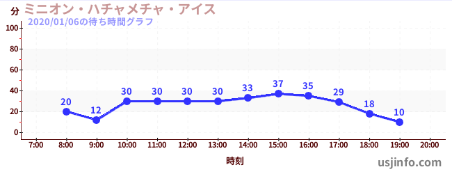 • ミニオン・ハチャメチャ・アイス$B$N(B2020年01月06日の待ち時間