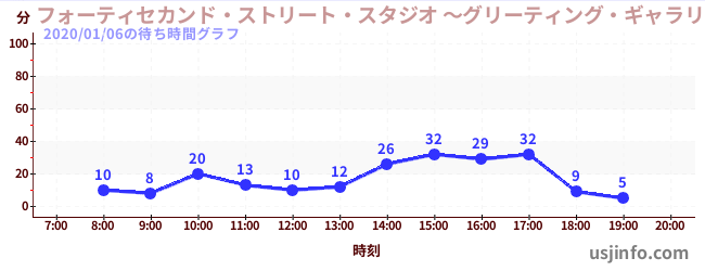 • フォーティセカンド・ストリート・スタジオ ~グリーティング・ギャラリー~ ミニオン$B$N(B2020年01月06日の待ち時間