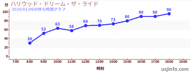 • ハリウッド・ドリーム・ザ・ライド$B$N(B2020年01月06日の待ち時間