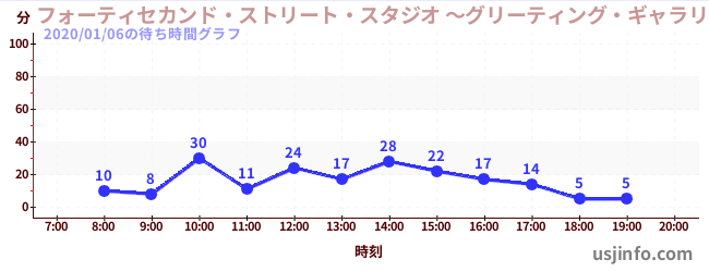 • フォーティセカンド・ストリート・スタジオ ~グリーティング・ギャラリー~ ピーナッツの仲間たち$B$N(B2020年01月06日の待ち時間