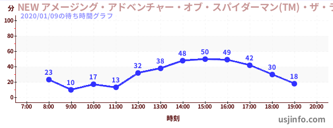 • NEW アメージング・アドベンチャー・オブ・スパイダーマン(TM)・ザ・ライド 4K3D$B$N(B2020年01月09日の待ち時間