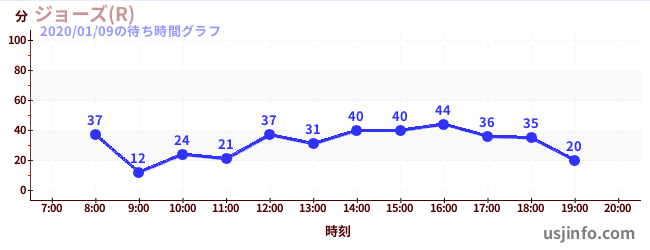 • ジョーズ(R)$B$N(B2020年01月09日の待ち時間