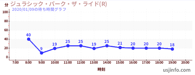 • ジュラシック・パーク・ザ・ライド(R)$B$N(B2020年01月09日の待ち時間