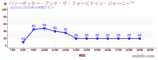 • ハリーポッター・アンド・ザ・フォービドゥン・ジャーニー™$B$N(B2020年01月09日の待ち時間