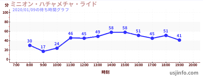 • ミニオン・ハチャメチャ・ライド$B$N(B2020年01月09日の待ち時間