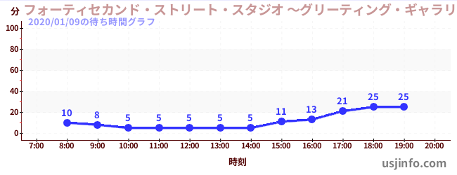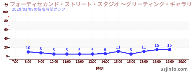 • フォーティセカンド・ストリート・スタジオ ~グリーティング・ギャラリー~ ミニオン$B$N(B2020年01月09日の待ち時間
